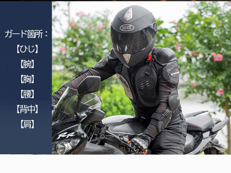 (2)3XLまで大きいサイズあり! (3)ガード箇所:ひじ、腕、胸、腰、背中、肩。
